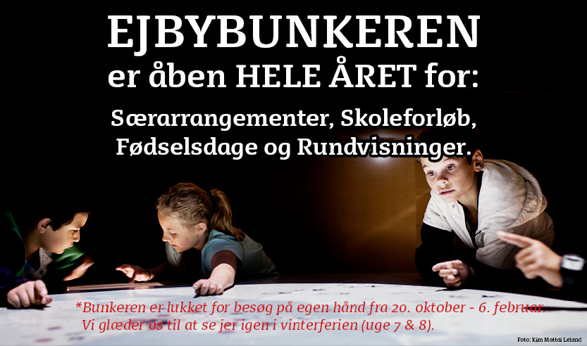Ejbybunkeren er åben HELE ÅRET for særarrangementer, skoleforløb, fødselsdage og rundvisninger.